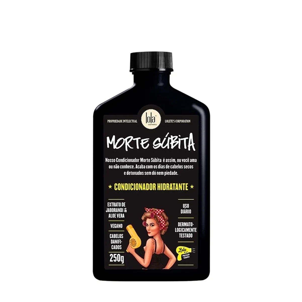 O Condicionador Morte Súbita, de Lola Cosmetics, combate o ressecamento com o aumento da hidratação e o resgate da elasticidade após os danos causados por processos químicos e uso diário de secador e chapinha. Além disso, ajuda a fortalecer os fios contra a quebra com a selagem das cutículas.